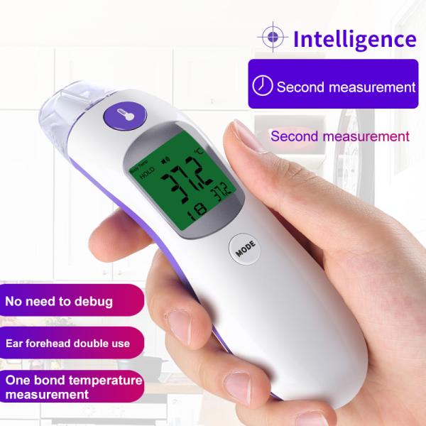 - Combination of infrared technology and sensor technology, touches the forehead or ears to measure the temperature within 1 second